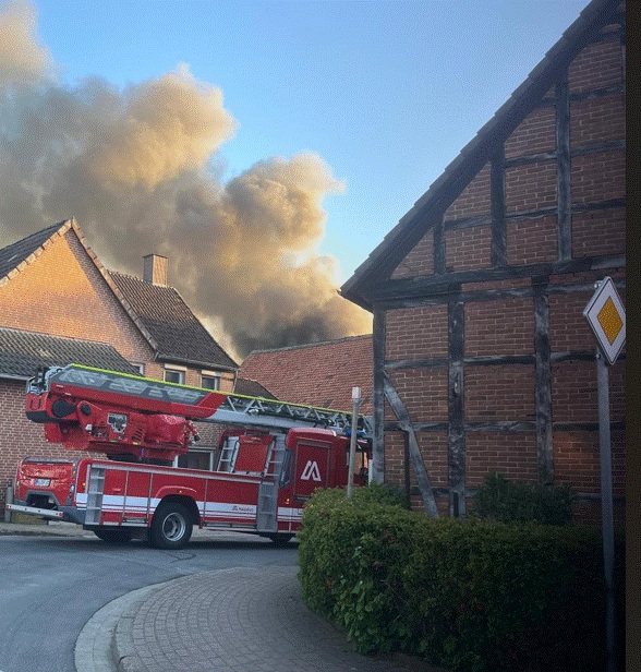Am Freitag Abend, um kurz nach 19 Uhr, wurden wir zusammen mit zahlreichen weiteren Kräften nach Bremke alarmiert. Das Alarmierungsstichwort lautete „F3: Wohnhaus“. Dieses Stichwort lässt grundsätzlich nichts Gutes verheißen, da das Kürzel F3 auf einen Großbrand hindeutet. Allerdings lässt die Alarmierung an einem frühen Freitag Abend die Vermutung auf eine Alarmübung zu. Dieses bewahrheitete sich leider nicht. Bereits auf der Anfahrt mit unserem MLF konnten wir die Rauchwolke über Bremke sehen. Somit war klar, dass es ein Ernstfall war.