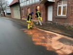 Erneut kam es am Freitagnachmittag zu einem Ölspurseinsatz im Ortsgebiet für uns. Auf der Esperder Staße wurde eine größere Öllache gemeldet, die in einen Gulli zu laufen drohte. Wir konnten die Gefahr rasch mittels Bindemittel beseitigen. Bei weiterer Erkundung wurden noch weitere Ölflecken im Verlauf der Esperder Straße und der Gönne entdeckt, die ebenfalls von uns mit Ölbindemittel behandelt wurden. Nach einer halben Stunde konnten wir den Einsatz beenden und wieder einrücken.