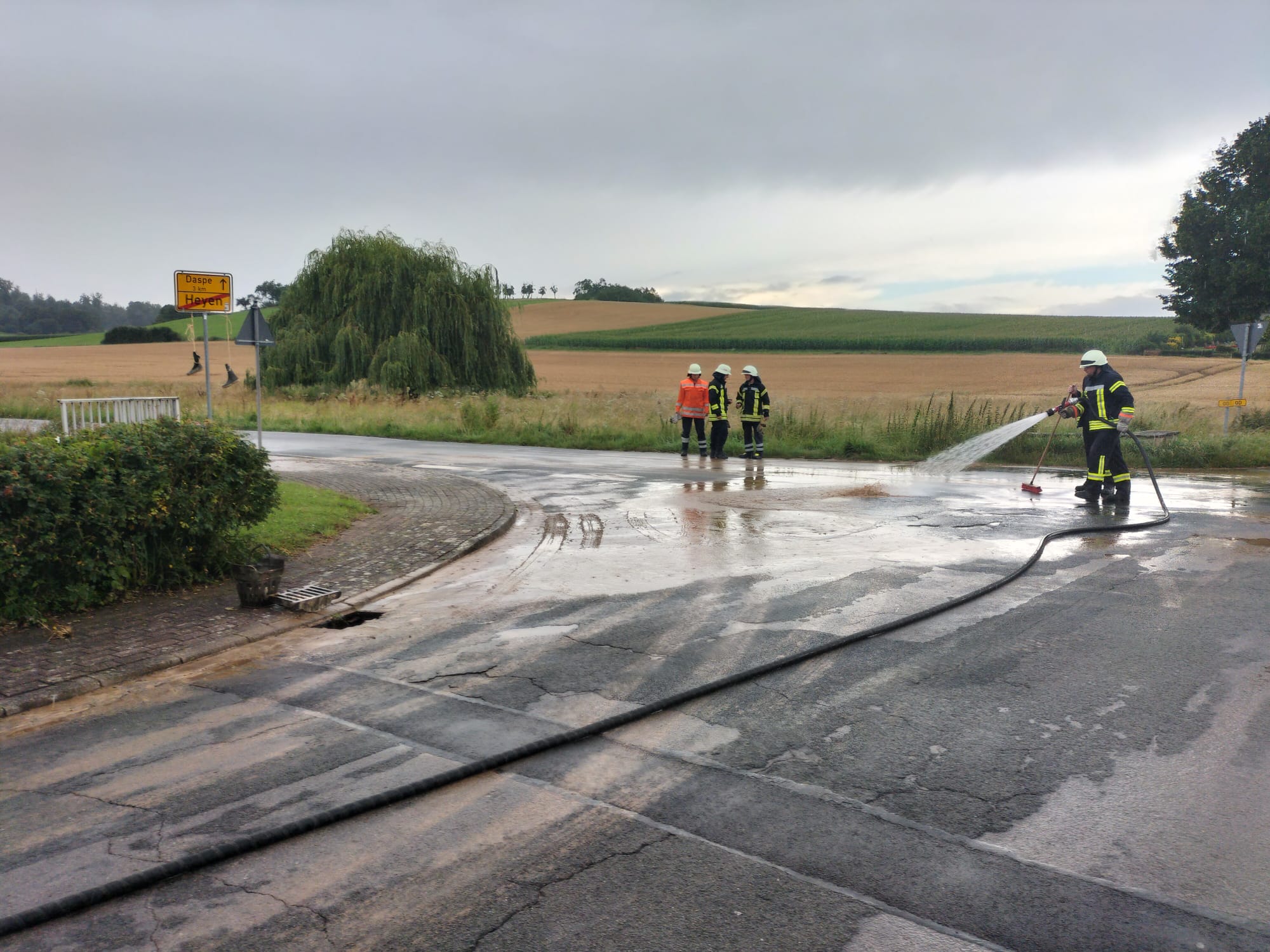 Bei dem Verkehrsunfall Einsatz (VU) am 23.07.2024 ist einigen Kameraden bei der Anfahrt zum Gerätehaus aufgefallen, dass es wieder in einigen Bereichen im Ortsgebiet zu Verschmutzungen der Fahrbahnen nach Starkregen gekommen war.